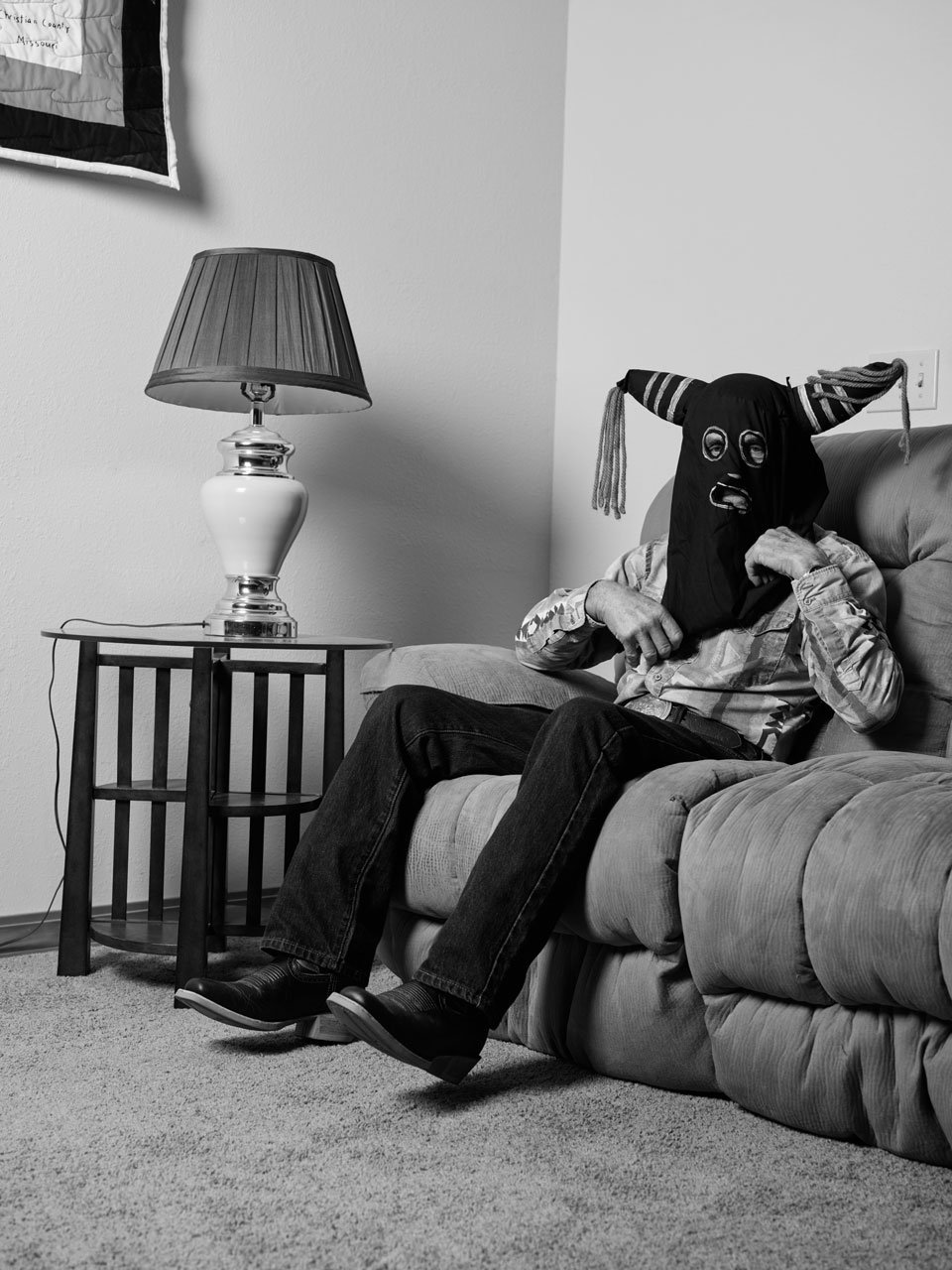 Connu familièrement sous le nom de Bald Knobbers, ce groupe était composé de citoyens ordinaires – commerçants, pasteurs et shérifs – qui avaient juré de protéger leur communauté de l’anarchie. En l’espace de cinq ans, leur nombre est passé de treize à environ cinq cents membres. Au moment de la dissolution du groupe, dix-sept personnes avaient trouvé la mort, sans compter les innombrables rapports faisant état de flagellations, d’incendies criminels, d’évasions de prison et de lynchages. Les Bald Knobbers sont devenus la terreur qu’ils avaient juré de vaincre. Teeth of the Wolf interroge l’histoire de ces hommes. C’est une histoire obscurcie par le secret et blanchie par des décennies de mythologie. En puisant dans les rares documents et archives photographiques qui subsistent, Jenna Garrett réimagine la violence du passé et recontextualise son incarnation dans le présent. L’objectif est d’étendre l’héritage des justiciers au-delà de leurs origines, en révélant que leurs tactiques de terreur n’ont pas disparu, mais qu’elles ont simplement muté.